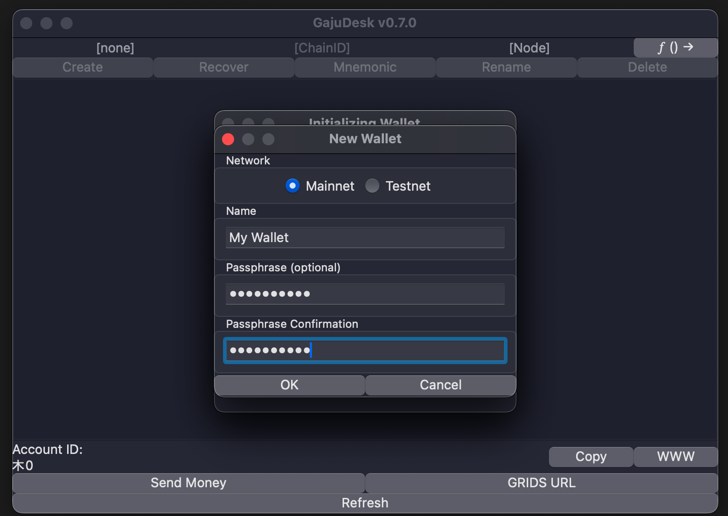 passphrase in order for GajuDesk to be able to read your wallet!