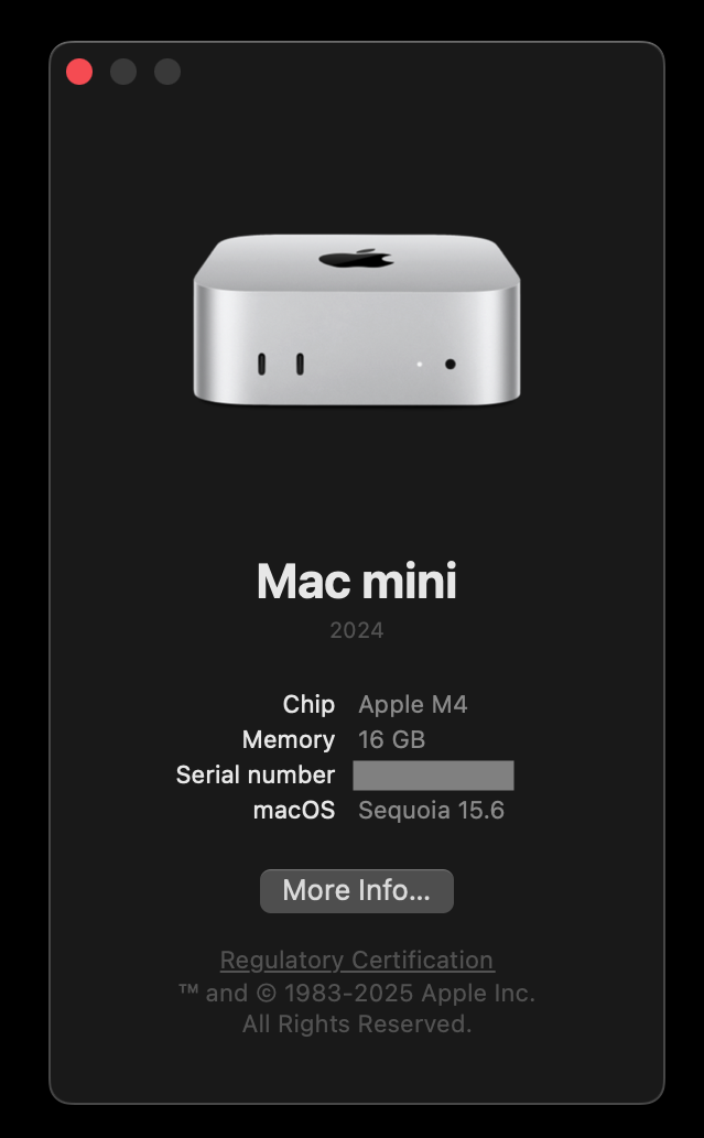 In this case we have a "Chip" entry on the information screen and it says "Apple M4".