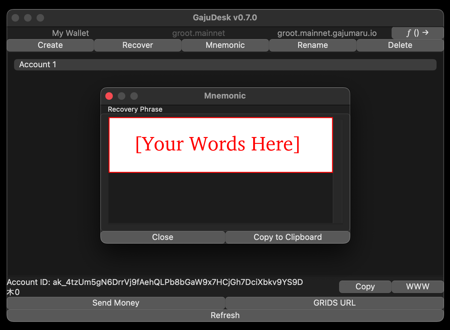 A mnemonic recovery phrase is a way that GajuDesk can encode your account key in a sequence of words.