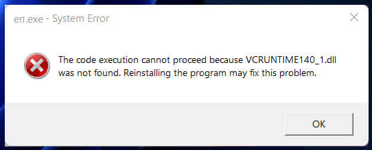 default. These libraries are required for many applications, including GajuMine, to run. If you get a system error about a missing component called "VCRUNTIME140.dll" (or sometimes "VCRUNTIME140_1.dll"),